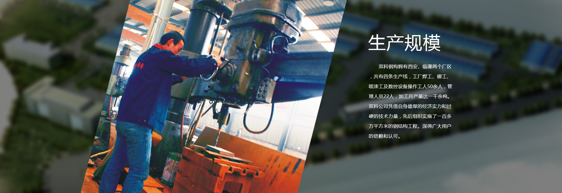 雙科鋼結(jié)構(gòu)有限公司臨潼廠(chǎng)區(qū),共有四條生產(chǎn)線(xiàn),工廠(chǎng)焊工、鉚工、噴漆工及數(shù)控設(shè)備操作工人50余人,管理人員22人,加工月產(chǎn)量達(dá)一千余噸。雙科公司憑借自身雄厚的經(jīng)濟(jì)實(shí)力和過(guò)硬的技術(shù)力…