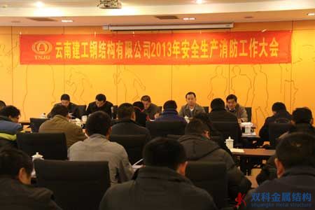 徐波帶隊到總承包公司方旺保障房項目觀摩學(xué)習(xí) 14日上午,云南建工集團鋼構(gòu)公司召開2013年安全生產(chǎn)消防大會。公司董事長魏華,總經(jīng)理王賓,黨委副書記陸朝富,副總經(jīng)理徐波、馮智江、茶本偉、左云平,黨委委員、紀委副書記、工會副主席歐友立出席會議。 |