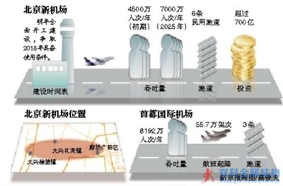 北京新機(jī)場(即首都第二機(jī)場)明年全面開建 力爭2018年完工;共有6條民用跑道;機(jī)場工程投入超700億元