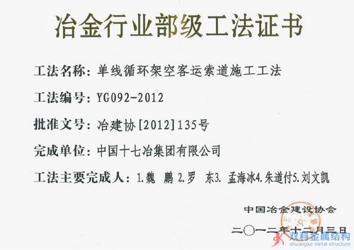 近日,從中國(guó)冶金建設(shè)協(xié)會(huì)獲悉,中國(guó)十七冶集團(tuán)榮獲5項(xiàng)部級(jí)工法。 獲得2012年度冶金行業(yè)部級(jí)工法的有:冶金工程技術(shù)公司的《單線循環(huán)架空客運(yùn)索道施工工法》和《插拔式高壓終端制作工法》、城建工程技術(shù)公司的《長(zhǎng)螺旋鉆干法成孔抗浮錨樁施工工法》和《土釘墻基坑支護(hù)加筋水泥土錨樁施工工法》,風(fēng)力與太陽(yáng)能發(fā)電工程技術(shù)公司的《2MW海上風(fēng)力發(fā)電機(jī)安裝工法》。 這5項(xiàng)部級(jí)工法的成功獲得,充分體現(xiàn)了公司對(duì)科技創(chuàng)新工作的高度重視、廣大技術(shù)人員過硬的專業(yè)技術(shù)水平以及十七冶人為推進(jìn)公司高質(zhì)量可持續(xù)發(fā)展的持續(xù)創(chuàng)新精神。 |