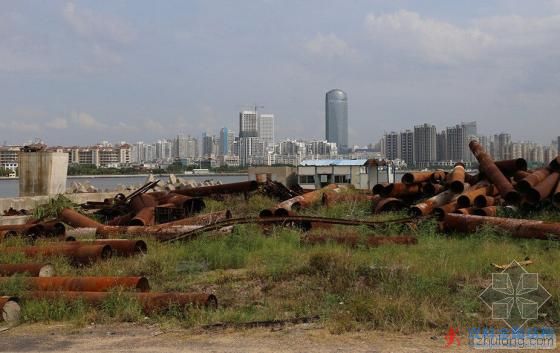 整個人工島遍地都是建筑垃圾,一堆堆裸放在現(xiàn)場的大量建筑用鋼管及鋼架,經(jīng)長久風(fēng)吹雨淋已嚴(yán)重銹蝕。