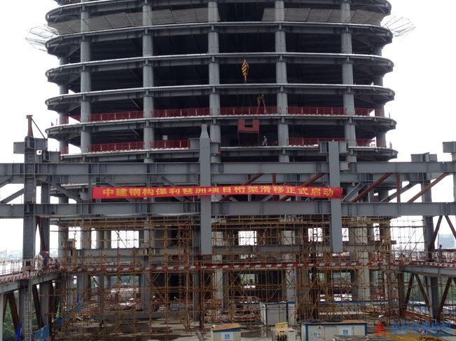 中建鋼構(gòu)保利琶洲項目桁架滑移正式啟動