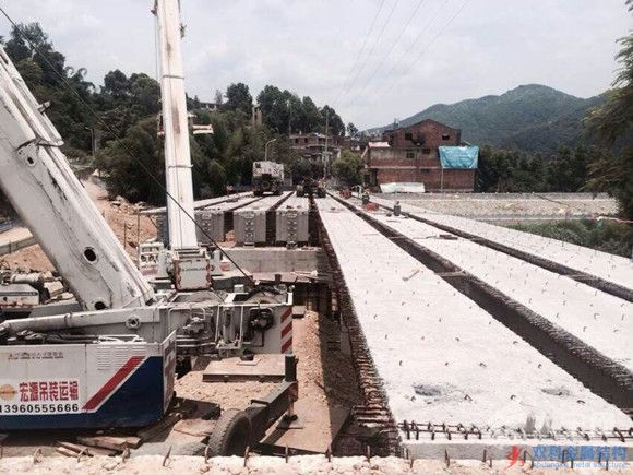 昨日,S302線溪潭橋現(xiàn)場熱火朝天,最后一片25米長、近60噸重的T梁在兩架吊車的懸吊下,經(jīng)過10分鐘緊張的檢查、測量、安放,平穩(wěn)地放到了蓋梁上面,標志著溪潭橋T梁吊裝完成。據(jù)悉,S302線溪潭橋橋位于福安市溪潭鎮(zhèn)境內(nèi),2013年經(jīng)過省市